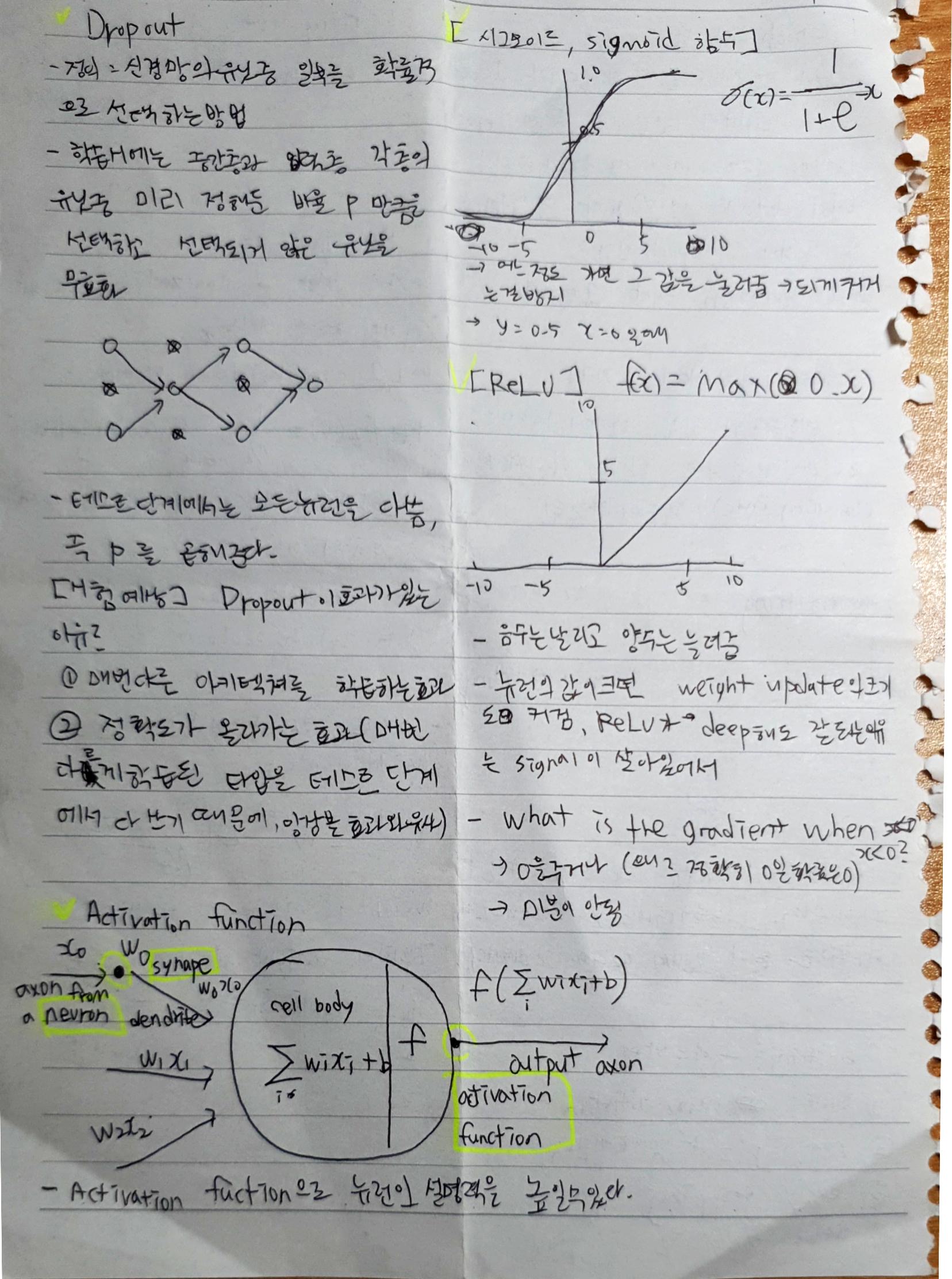 초반부분은 Linear Algebra, 행렬부터 시작해서 epoch 계산법, Dropout, activation function등 다양한 내용이다.