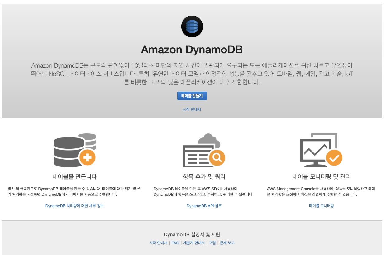 1. 우선 AWS에 로그인 후 DynamoDB를 생성합니다.