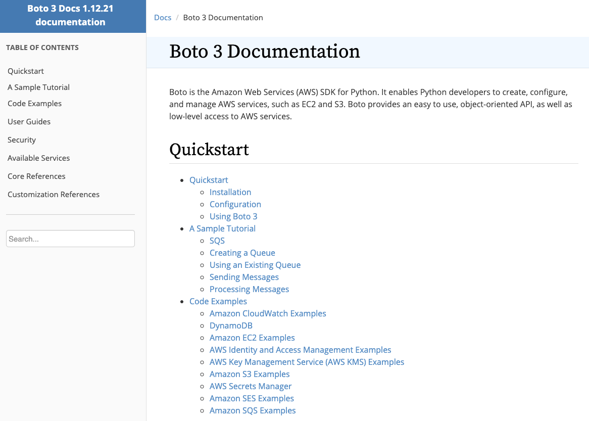 https://boto3.amazonaws.com/v1/documentation/api/latest/index.html