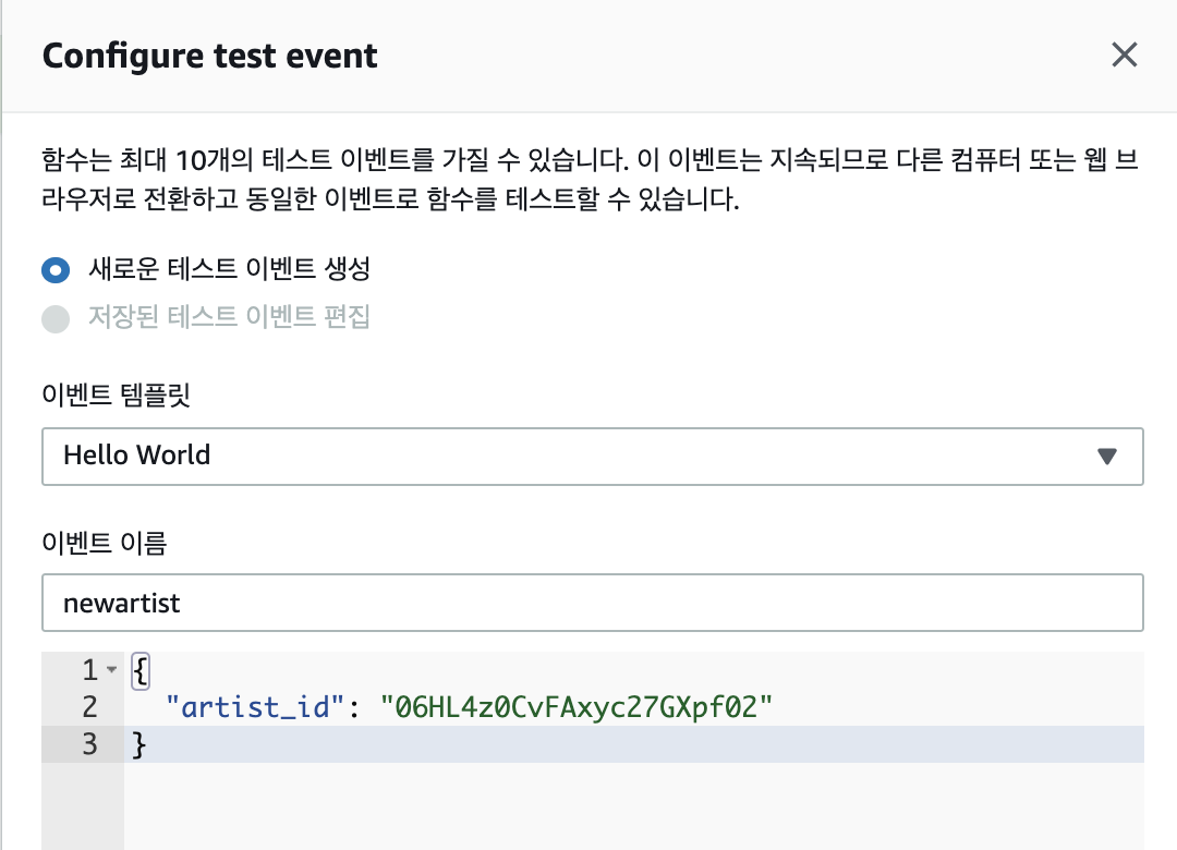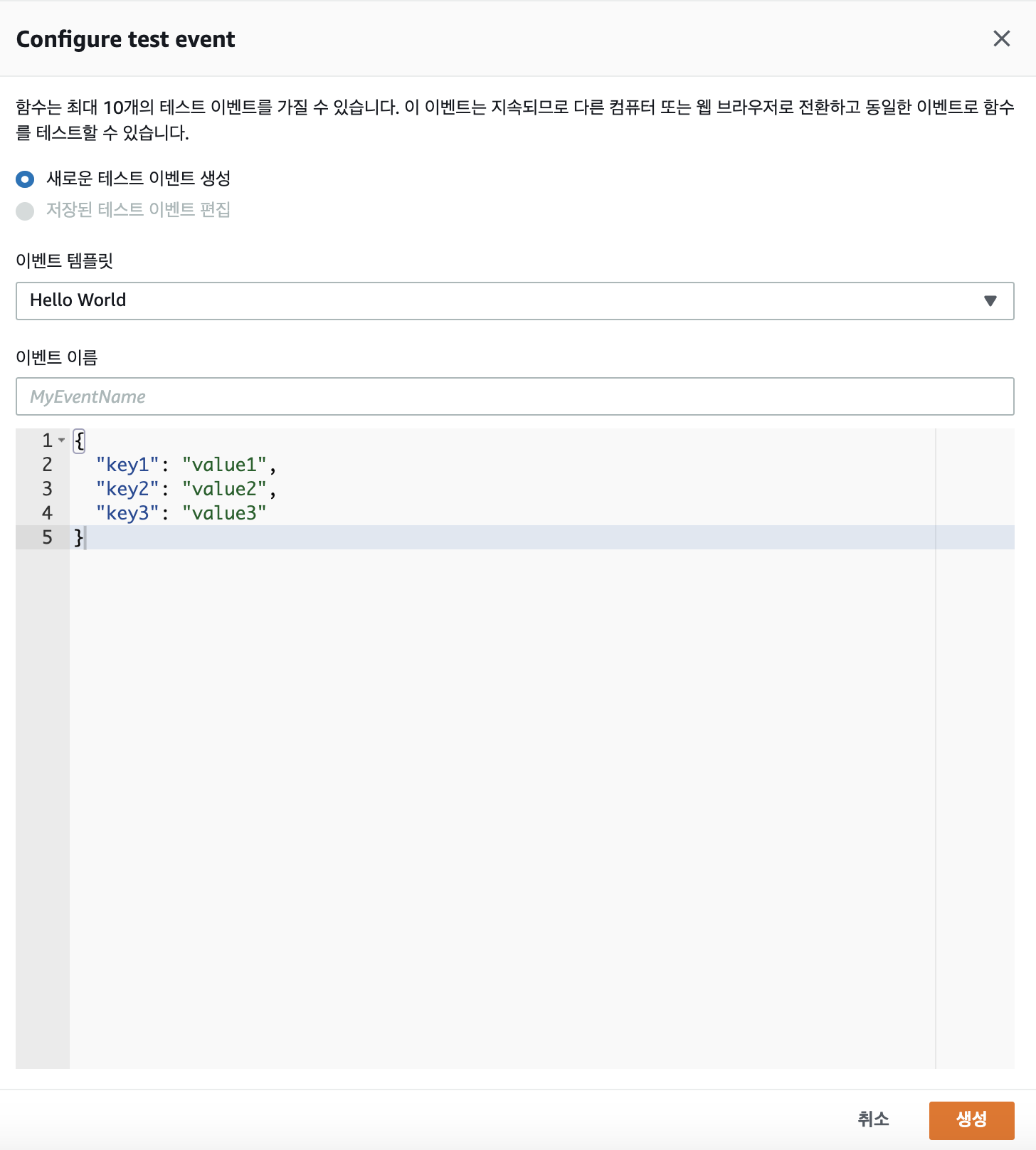 AWS Lambda(람다) 테스트 이벤트 구성 선택