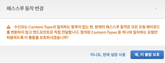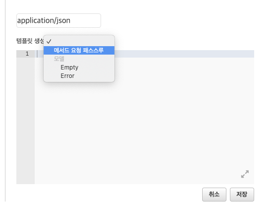 템플릿 생성 > 메서드 요청 패스스루 지정