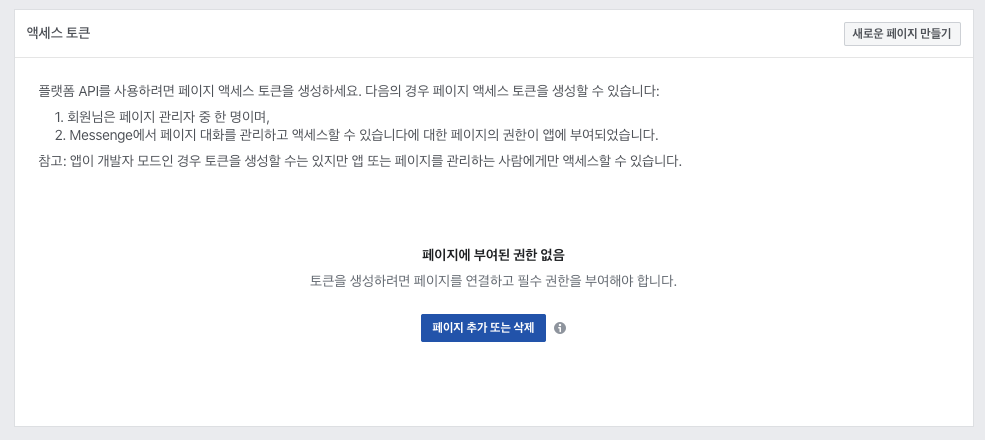 액세스 토큰 > 페이지 추가 또는 삭제 선택