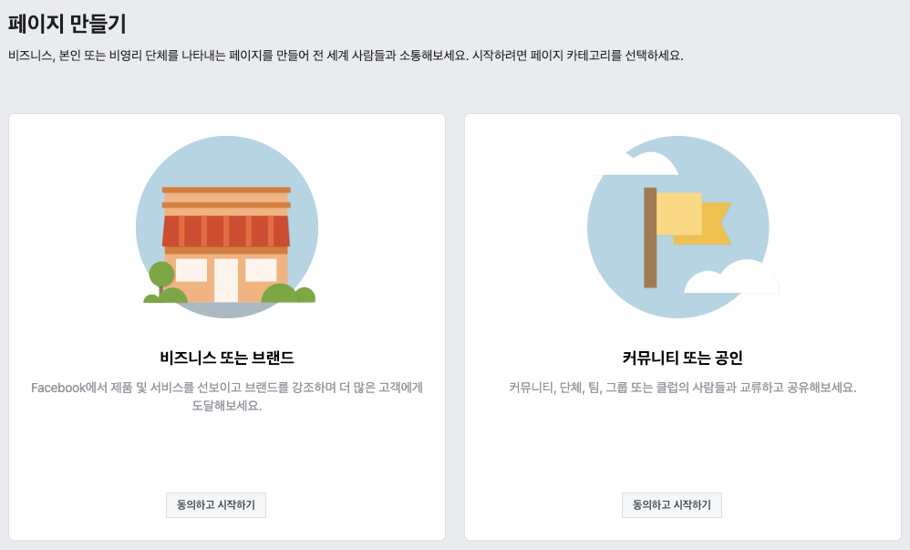페이지 만들기 > 비즈니스 또는 브랜드 선택