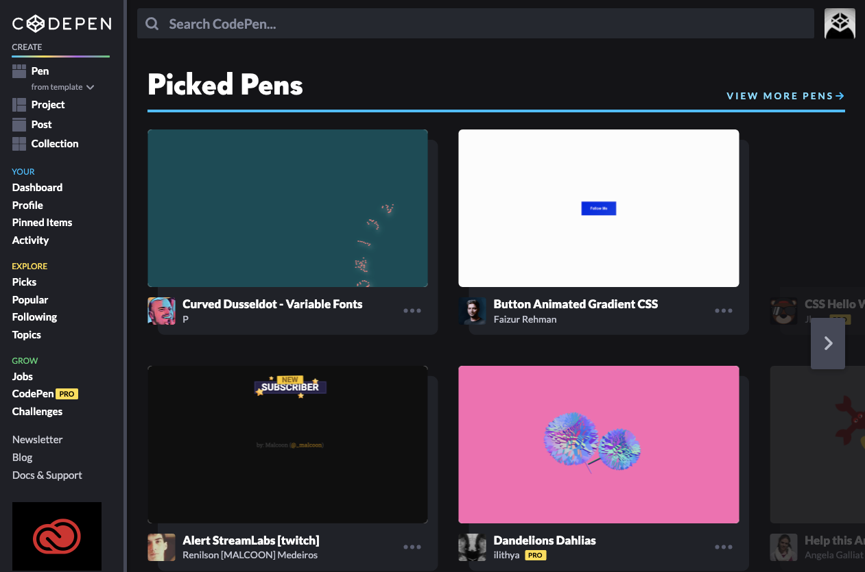 An online code editor, learning environment, and community for front-end web development using HTML, CSS and JavaScript code snippets, projects, and web applications.
