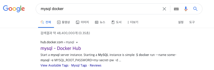 1. 구글 검색창에 mysql docker 입력한다. mysql - docker hub를 선택한다.