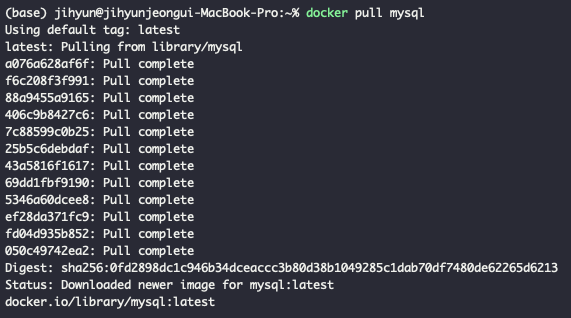 3. docker pull mysql 명령어를 실행한다.